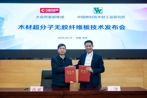 扫描或点击关心中金正在线日,中国林业科学研究院木材工业研究所取大天然家居(中国)无限公司正在配合发布“木材超无胶纤维板手艺”500)this。width=500 align=center hspace=10 vspace=10 rel=nofollow/“木材超无胶纤维板手艺”是由木材超科学研究室和大天然家居配合研发,这项手艺正在保守的人制板行业中将是一种性绿色环保手艺,其焦点立异点正在于不再借帮常规胶粘剂,而是通过建立正在纤维间建立动态超收集实现纤维间的慎密连系。从而使人制板行业无望减低对胶粘剂的依赖,也为鞭策完全处理因胶粘剂产的甲醛污染问题供给了簇新的路子。发布会上,业内沉磅专家纷纷对该手艺予以高度必定。专家们认为,超无胶纤维板手艺是一个很是严沉的冲破,既是国度木竹财产手艺计谋联盟项目标主要,也是纤维板行业全新的;实现105℃下的超无胶纤维板制备,能大大降低能耗,这项手艺是所企合做的典范,实正实现了科技立异和企业立异的高度融合,并为保守的人制板行业焕发重生机新活力供给了新动能。