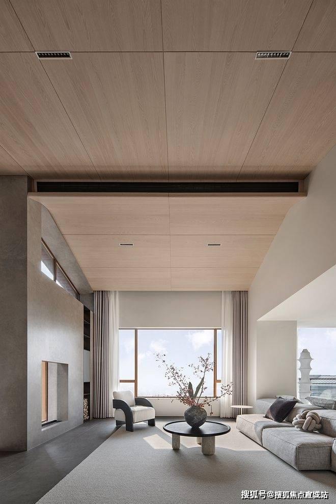 下方设想师特地开出一个低窗,取天台取得了巧妙的联动,呼吸感十脚,让人正在客堂之中,能够抬眼望向窗外景不雅,将糊口的张取驰拿捏得恰如其分。